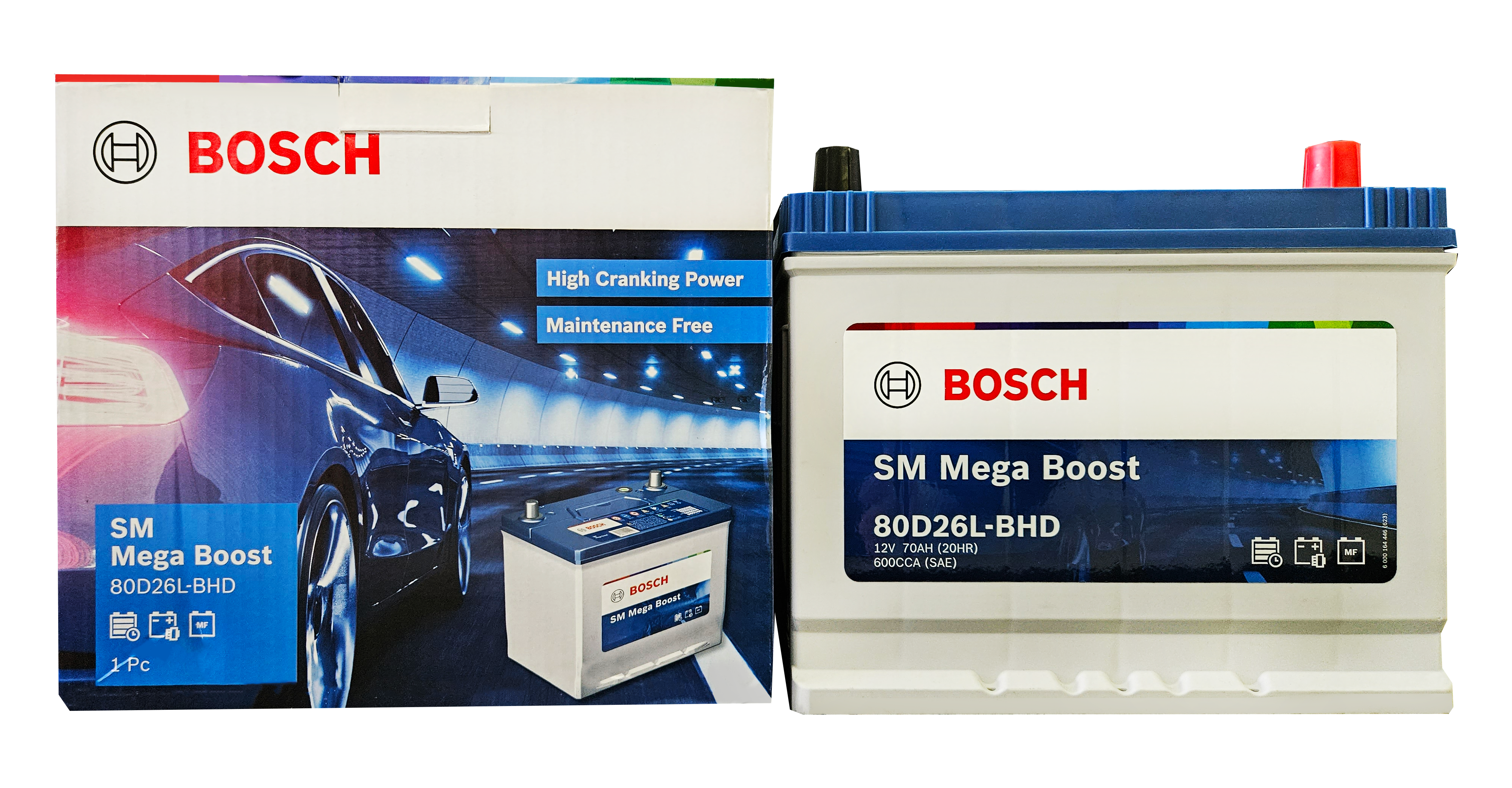 – Ắc quy Bosch 80D26R/L (NX110-5L) 12V 70AH được gọi là ắc quy miễn bảo dưỡng, MF – Maintenanece Free Battery, khô, kín khí, Calcium, thuộc dòng sản phẩm SM Mega Boost Batteries được nhập khẩu chính hãng sản xuất bởi Tập đoàn Bosch, sản phẩm được phân phối chính hãng, bảo hành 9 tháng.